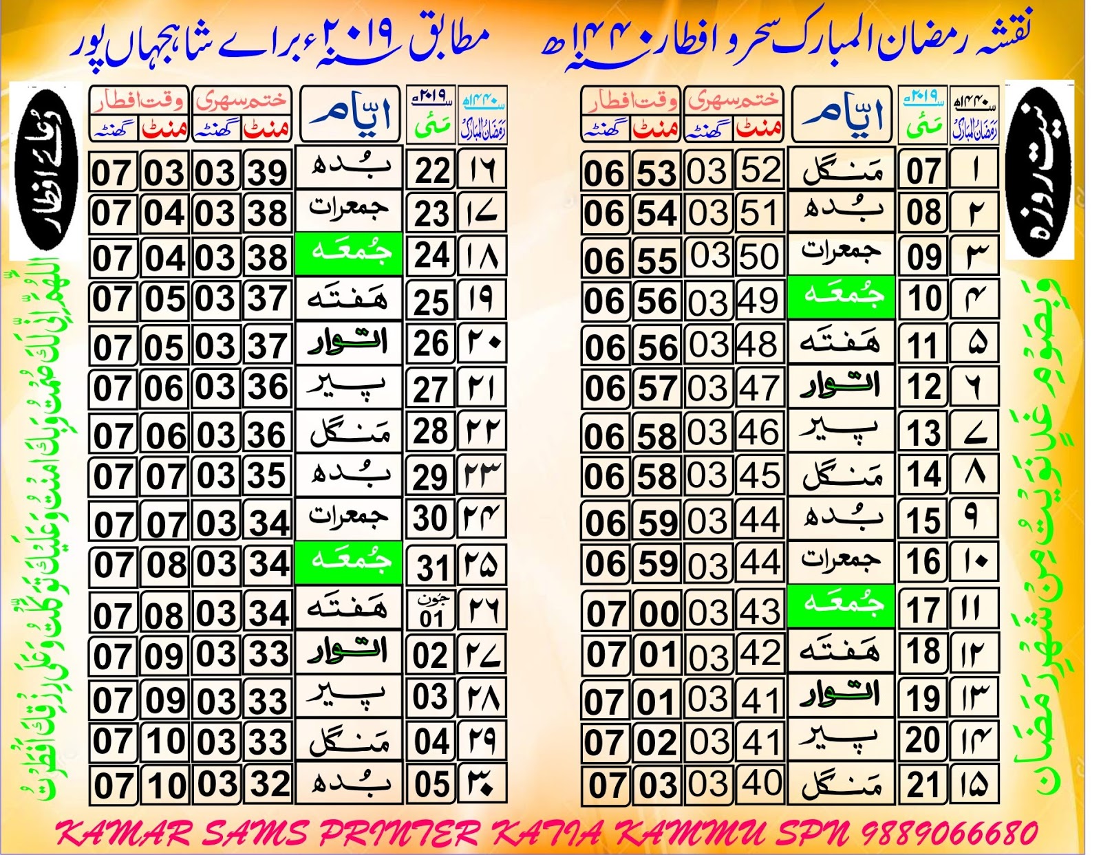 Pakistan Ramadan Calendar 2019 Sehr O Iftar Timings Ramzan Time